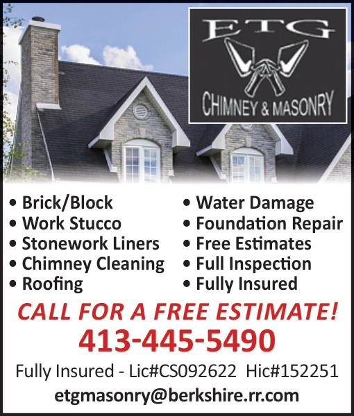 Dec 02, 2024. ETG Chimney & Masonry Home & Garden Ads from The Berkshire Eagle ShopLocal