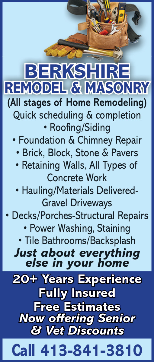 Oct 01, 2025. Berkshire Remodel & Masonry Home Improvement Ads from The Berkshire Eagle ShopLocal