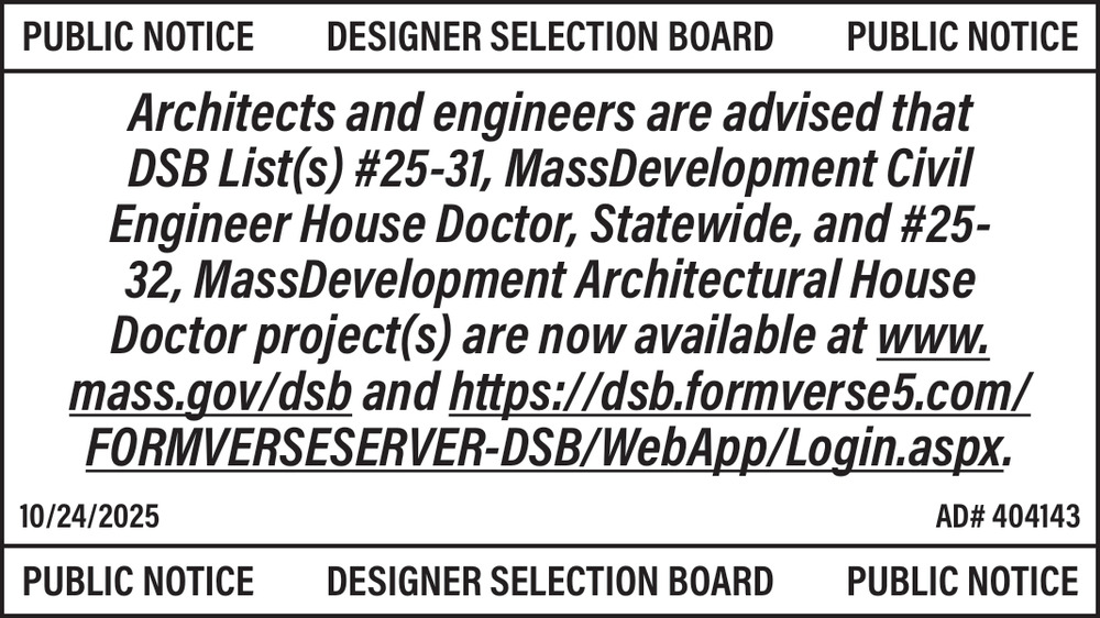Oct 24, 2025. Commonwealth of Massachusetts Designer Selection Board Notices Ads from The Berkshire Eagle ShopLocal