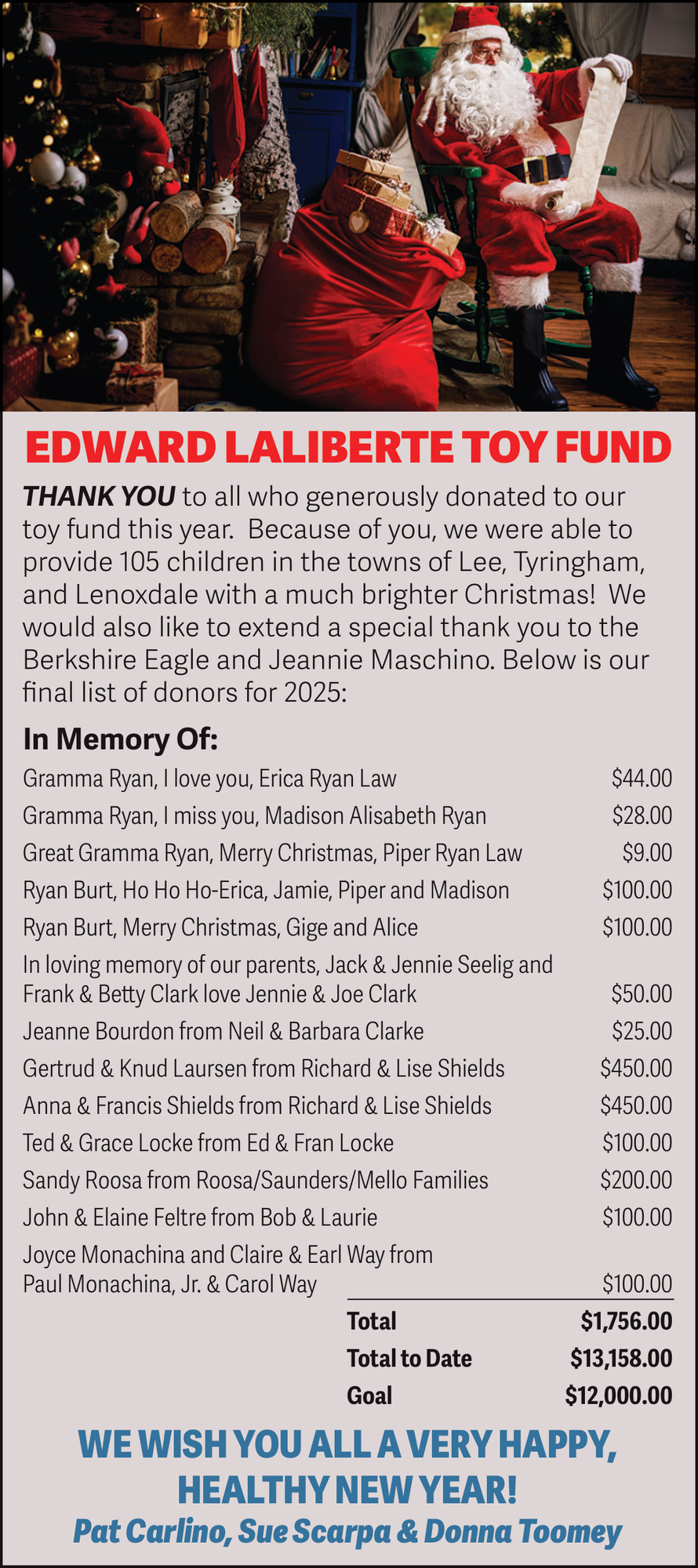 Jan 14, 2026. Edward Laliberte Toy Fund Misc Ads from The Berkshire Eagle ShopLocal