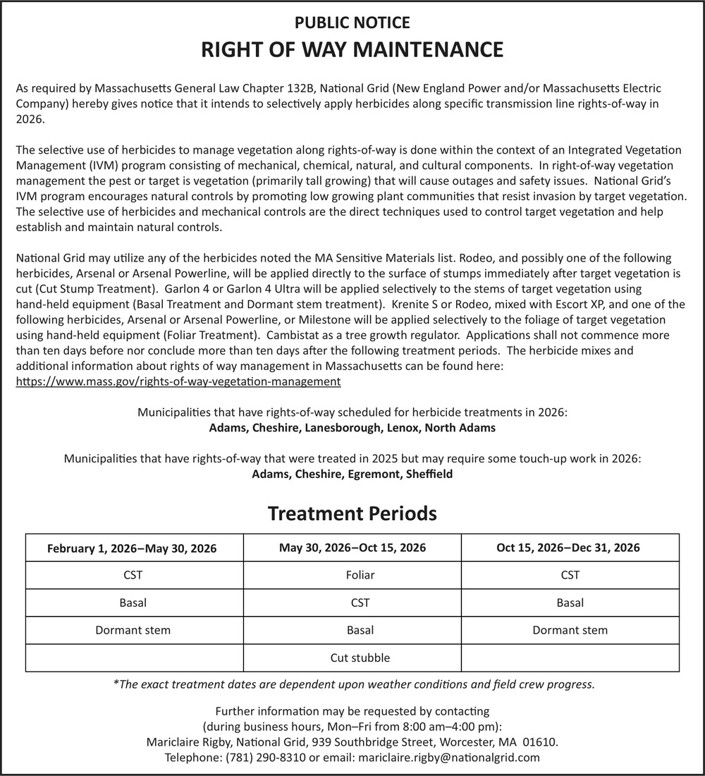 . National Grid - Worcester Notices Ads from The Berkshire Eagle ShopLocal
