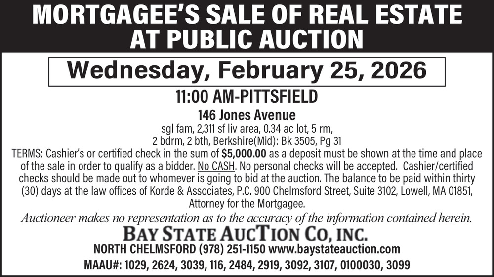Feb 21, 2026. Bay State Auction Co, Inc Auction Ads from The Berkshire Eagle ShopLocal