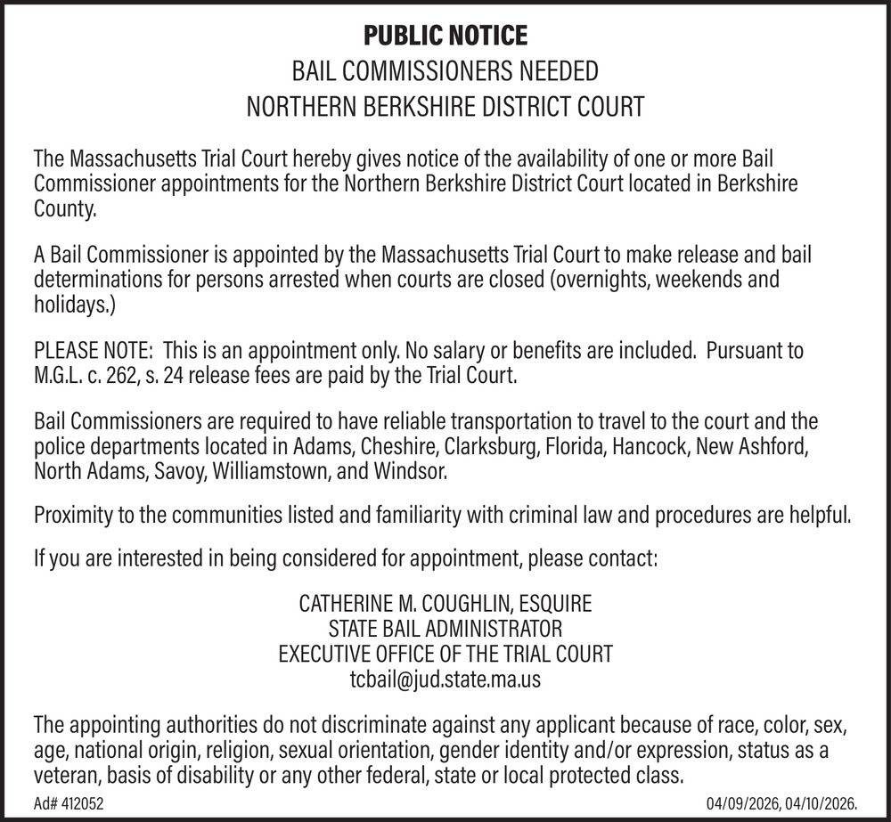 Apr 09, 2026. Massachusetts Trial Court Executive Office - Catherine M. Coughlin Notices Ads from The Berkshire Eagle ShopLocal